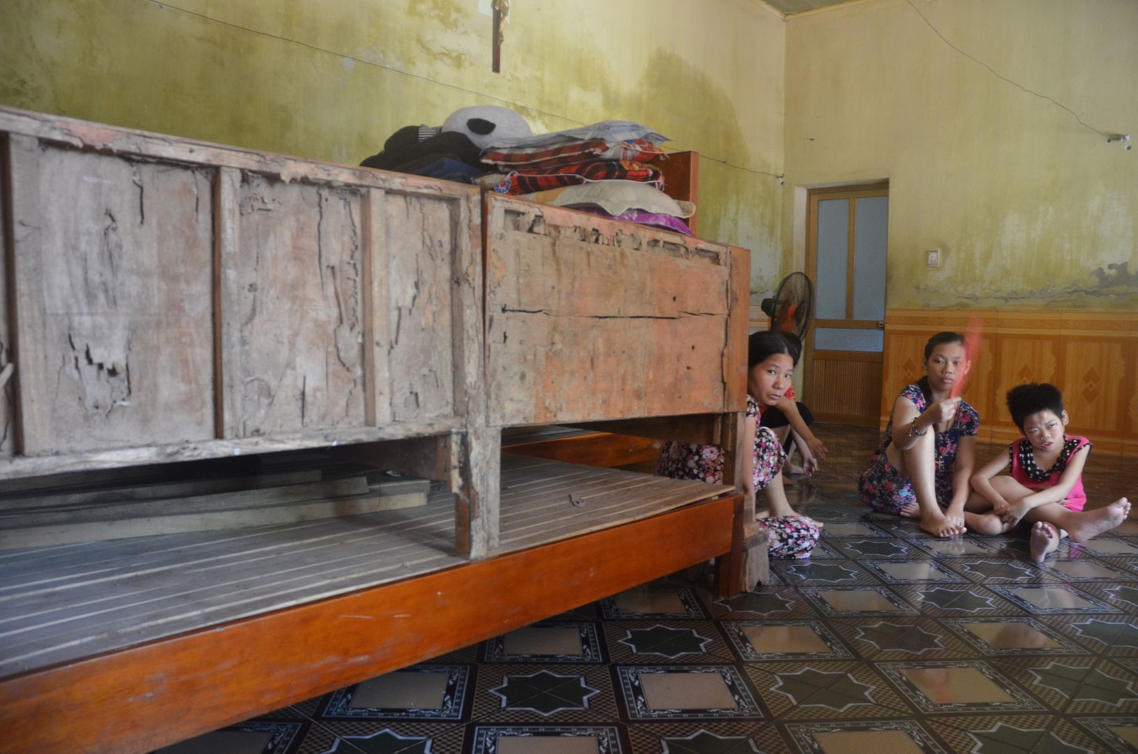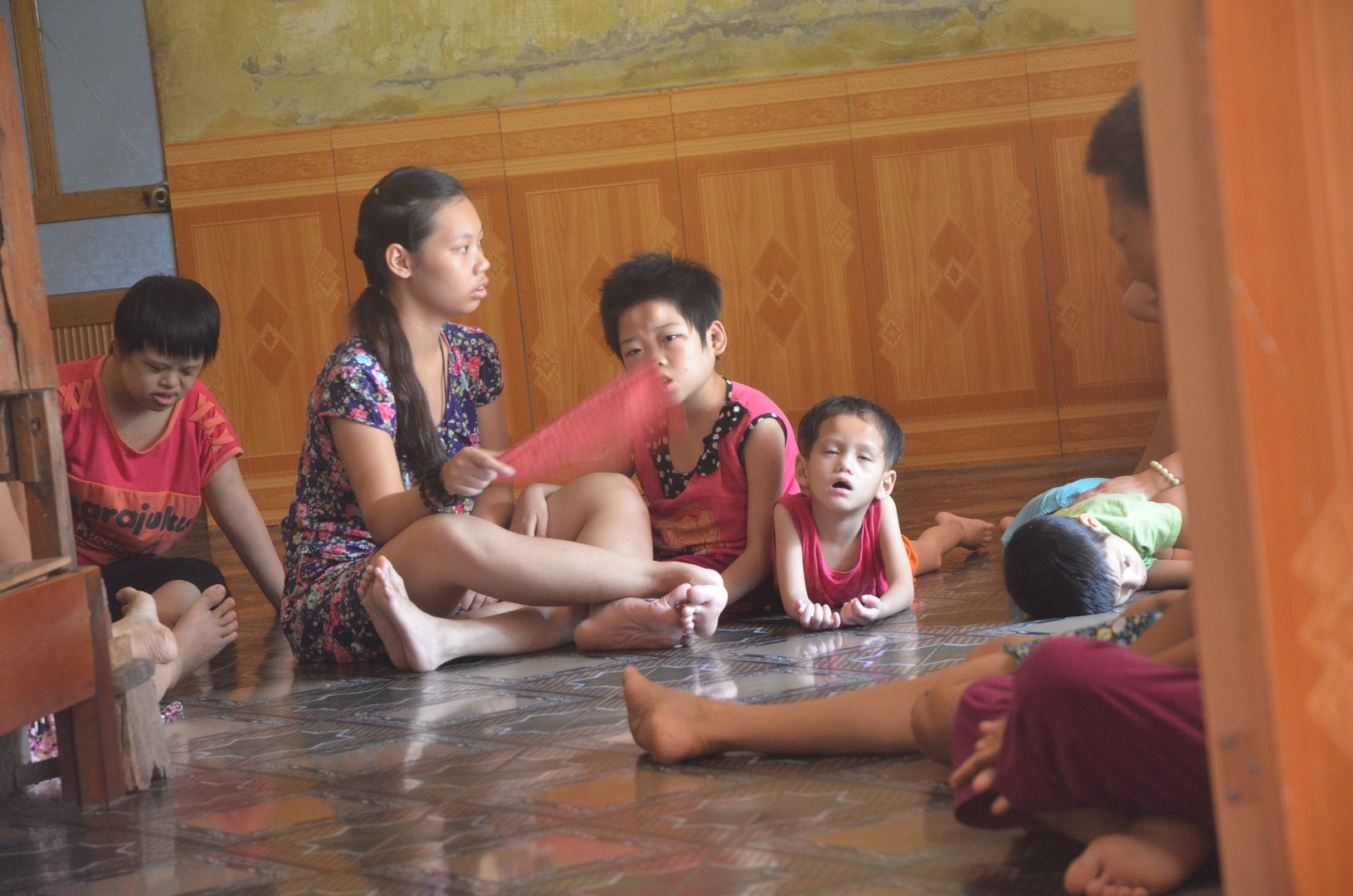 Đó là một gian buồng chỉ vẻn vẹn chừng vài mét vuông chật chội, nhưng lại là nơi ở của hơn 10 em nhỏ mang trong mình những căn bệnh quái ác như động kinh, đao, tự kỉ, .. Có những em không thể ngồi dậy mà nằm la liệt trên nền nhà, bên cạnh không có gì ngoài một chiếc giường gỗ mục nát và chắp vá cùng duy nhất một chiếc quạt cây cho ngần ấy con người. Dẫu có che đậy cỡ nào cũng không giấu được bức tường ẩm mốc nhợt nhạt, những xấp chăn gối tối giản và loang lổ. Trong không gian ngột ngạt vây quanh, những ánh mắt trẻ con ngơ ngác, chốc chốc vang lên những tiếng cười ngây dại nho nhỏ, rồi chốc lại rơi vào yên lặng trong những tiếng thở dài lay lắt và tiếng quạt tay đều đều, khiến mọi người đều không khỏi xót xa.