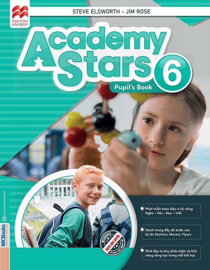 Academy Stars Pupil’s Book 6 là cấp độ cao nhất trong bộ sách tiếng Anh tiểu học Academy Stars của Macmillan Education, được xuất bản tại Việt Nam bởi MCBooks. Cuốn sách giúp học sinh lớp lớn hoàn thiện kỹ năng tiếng Anh toàn diện — nghe, nói, đọc, viết — đồng thời phát triển khả năng tư duy phản biện, sáng tạo và tự học.