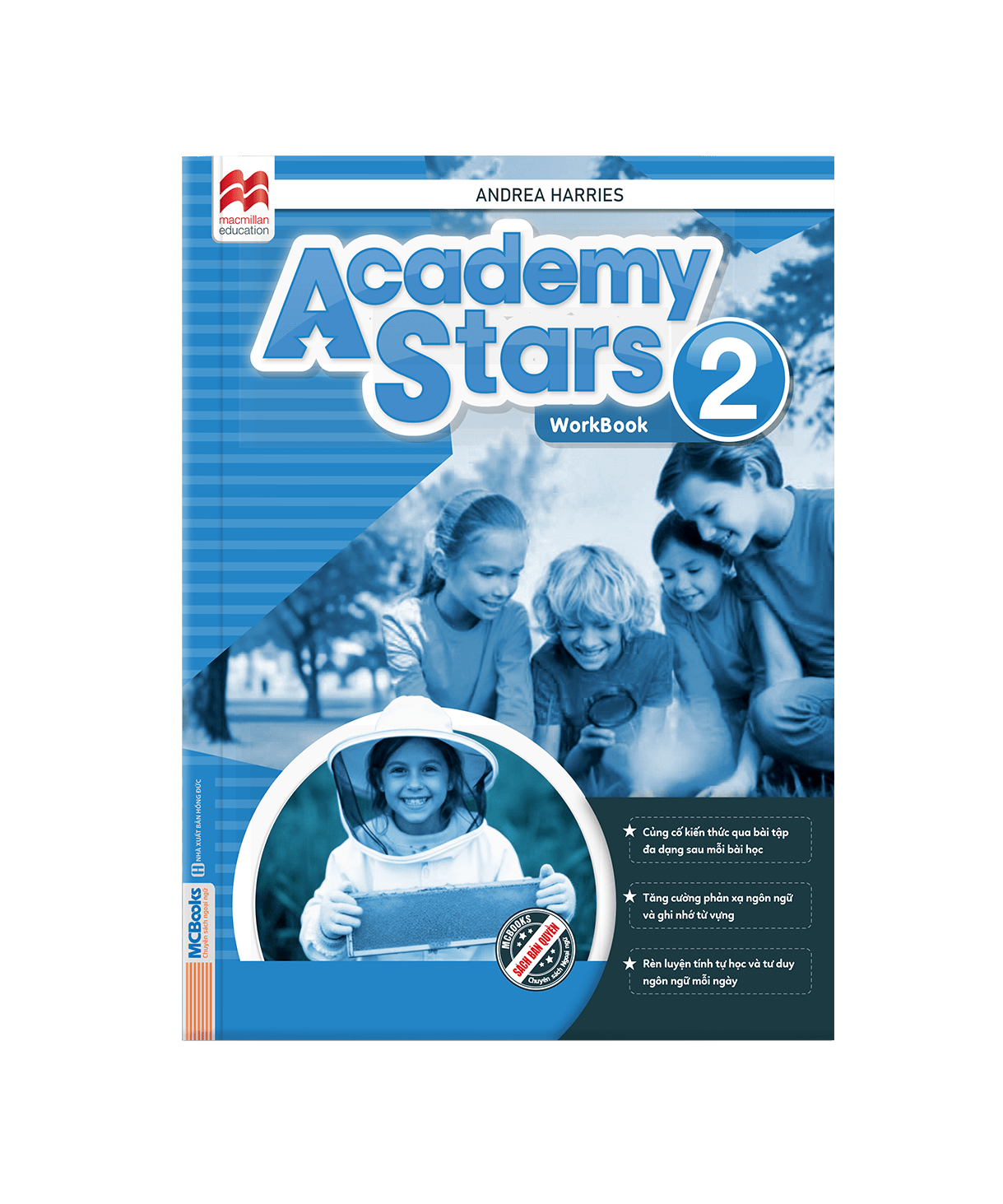 Academy Stars Workbook 2 là tài liệu bổ trợ song hành cùng Academy Stars Pupil’s Book 2, được thiết kế nhằm giúp học sinh ôn luyện, củng cố và mở rộng kiến thức đã học. Với hệ thống bài tập đa dạng, phong phú và bám sát từng đơn vị bài học, cuốn Workbook đóng vai trò quan trọng trong việc rèn luyện kỹ năng và giúp học sinh nắm chắc ngữ pháp, từ vựng cũng như cách sử dụng tiếng Anh trong thực tế.