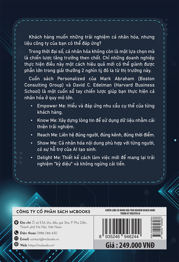 Cuốn sách cung cấp một hệ thống tư duy, phương pháp và mô hình triển khai thực tế để giúp doanh nghiệp đưa cá nhân hóa trở thành lợi thế cạnh tranh bền vững trong thời đại trí tuệ nhân tạo (AI).