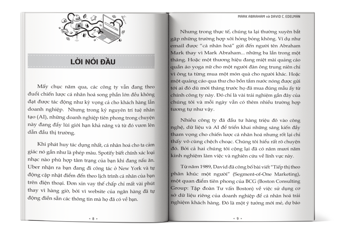 Chiến lược cá nhân hóa trải nghiệm khách hàng trong kỷ nguyên AI là cuốn sách chuyên sâu của hai chuyên gia hàng đầu thế giới về marketing và chuyển đổi số — Mark Abraham và David C. Edelman.