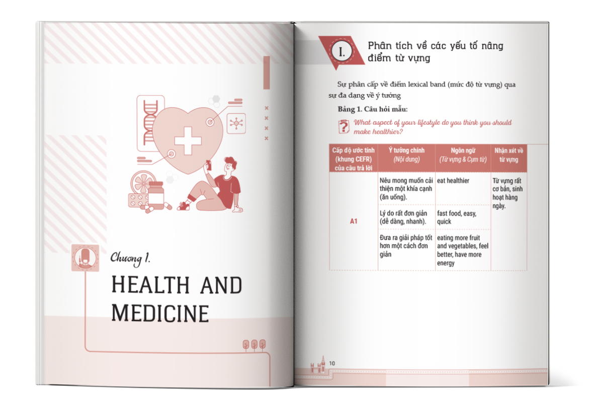 Khác với nhiều tài liệu chỉ liệt kê từ theo chủ đề, cuốn sách này xây dựng một hệ thống từ vựng có phân cấp rõ ràng theo band điểm, đồng thời hướng dẫn cách “cài cắm” từ vựng vào bài nói và bài viết một cách tự nhiên, chính xác.