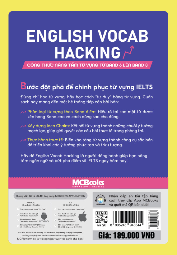 English Vocab Hacking – Công Thức Nâng Tầm Từ Vựng Từ Band 6 Lên Band 8 là cuốn sách chuyên sâu giúp người học IELTS phá vỡ giới hạn từ vựng thông thường và từng bước chinh phục band 7.0 – 8.0.
