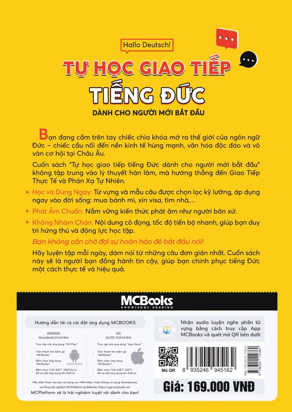 Hallo Deutsch Tự Học Giao Tiếp Tiếng Đức Dành Cho Người Mới Bắt Đầu không hứa hẹn biến bạn thành người nói tiếng Đức lưu loát chỉ sau một thời gian ngắn. Thay vào đó, cuốn sách mang đến cho bạn một nền tảng vững vàng, những mẫu câu thiết thực và sự tự tin cần thiết để bước vào giao tiếp đời sống bằng tiếng Đức một cách tự nhiên hơn mỗi ngày.