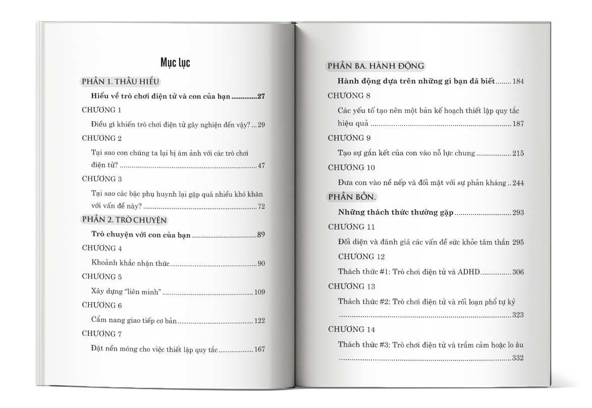 - Phần 1: Thấu hiểu – Giải thích tại sao trò chơi điện tử lại cuốn hút, nguyên nhân trẻ dễ nghiện game, và khó khăn của cha mẹ trong việc quản lý.