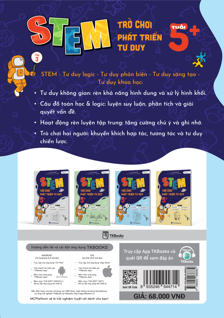 Tóm lại, STEM – Trò Chơi Phát Triển Tư Duy Tuổi 5+ – Tập 3 không chỉ là cuốn sách rèn luyện tư duy, mà còn là “chiếc chìa khóa” mở ra thế giới sáng tạo và logic cho trẻ. Đây là món quà học tập ý nghĩa, giúp các em tự tin bước vào hành trình tri thức trong kỷ nguyên số.