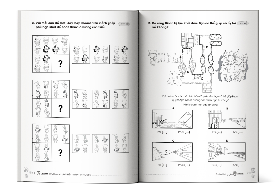 Những thử thách đầy thú vị trong phần này sẽ giúp trẻ tập luyện khả năng suy nghĩ chặt chẽ, nhận diện mối quan hệ giữa sự vật và hiện tượng.