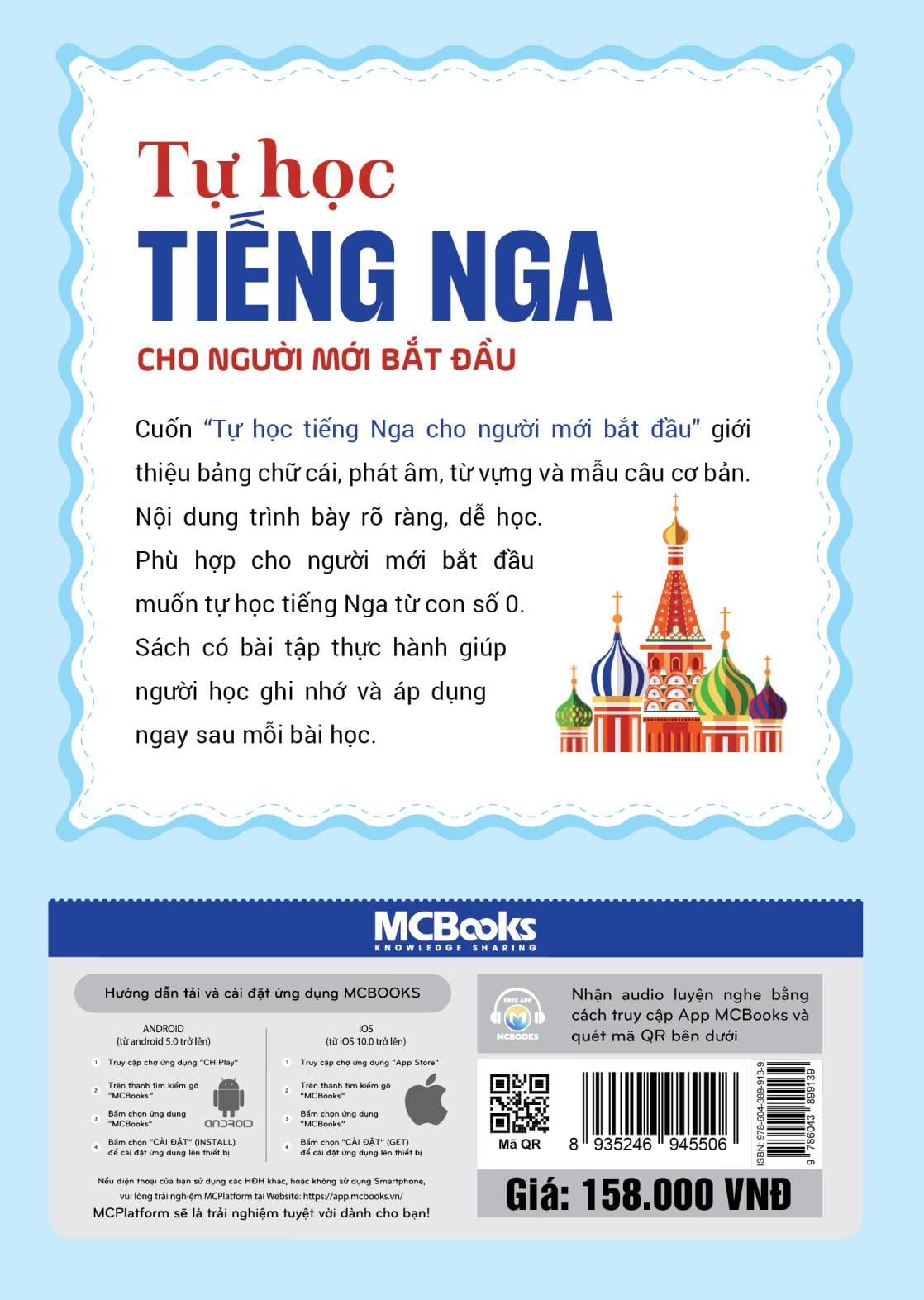 Tự học tiếng Nga cho người mới bắt đầu là cuốn sách nền tảng giúp bạn tiếp cận ngôn ngữ Nga một cách dễ dàng và hiệu quả. Sách được biên soạn dành riêng cho người học từ con số 0, gồm ba phần chính: giới thiệu cơ bản về tiếng Nga, các tình huống giao tiếp hàng ngày, và những mẫu câu nghi thức thường dùng. Với phiên âm gần gũi tiếng Việt, bố cục logic và ứng dụng thực tế cao, cuốn sách giúp bạn học tới đâu áp dụng ngay tới đó. Đây là lựa chọn lý tưởng cho học sinh, sinh viên, người đi làm hay bất cứ ai yêu thích ngôn ngữ Nga.